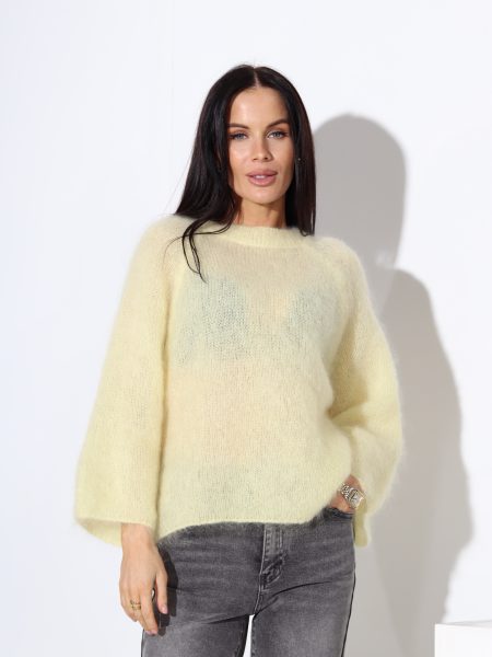 Dzeltens mohēras džemperis ar slīpu plecu daļu – 17706