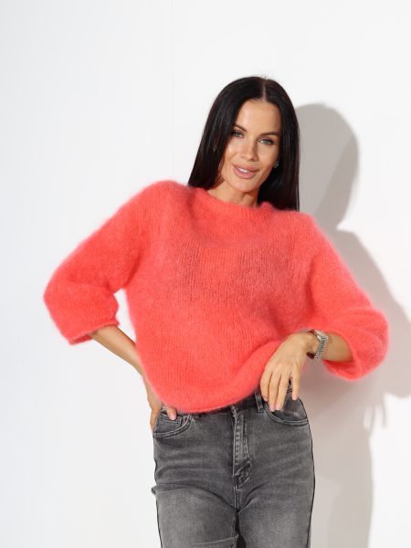 Oranžs mohēras džemperis ar saīsinātu piedurkni, noapaļota kakla daļa – 17699