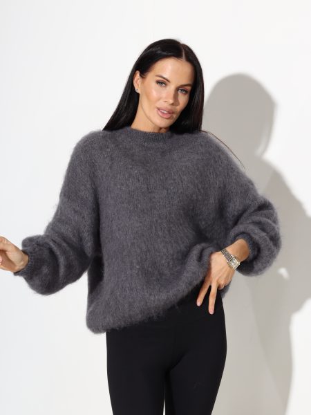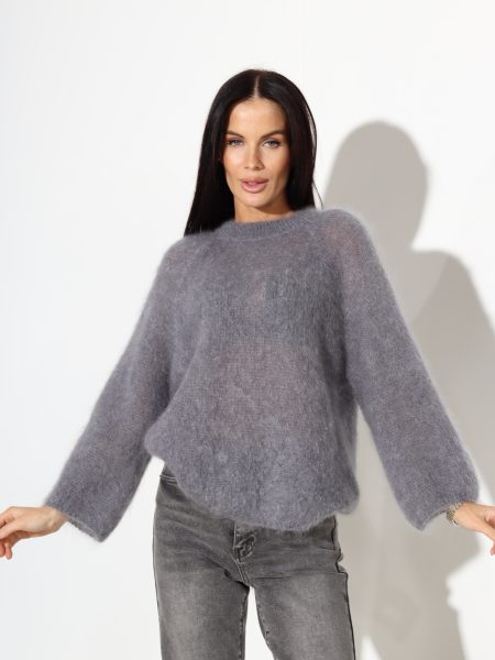T.pelēks mohēras džemperis ar slīpu plecu daļu – 17704
