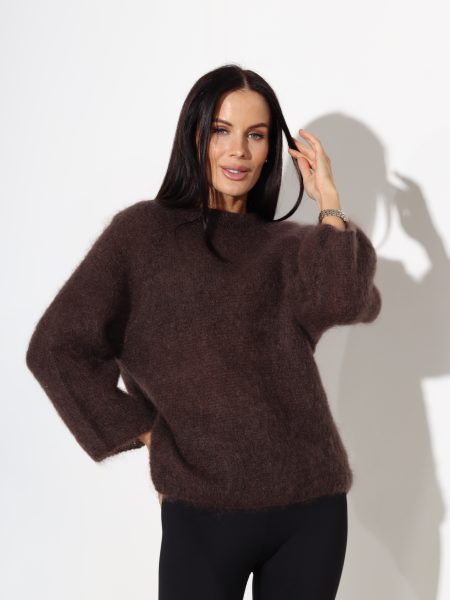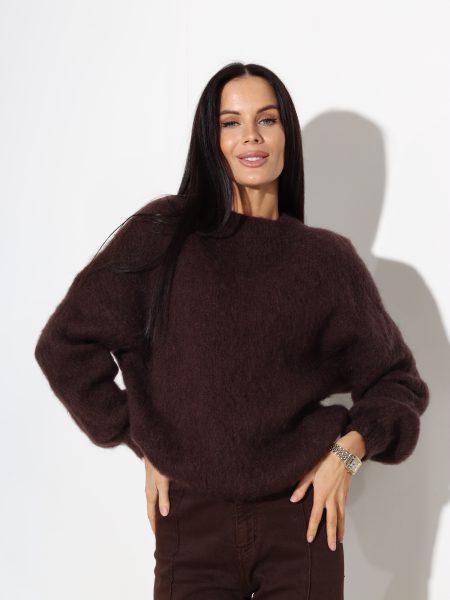 T.brūns mohēras džemperis ar slīpu plecu daļu – 17707