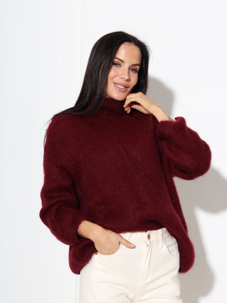 Bordo mohēras džemperis ar ‘Mini Up’ kaklu – 17522