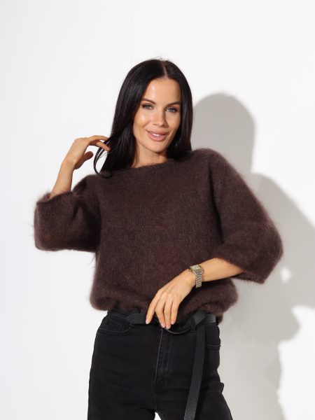 T.brūna mohēras džemperis ar saīsinātu piedurkni, noapaļota kakla daļa – 17698