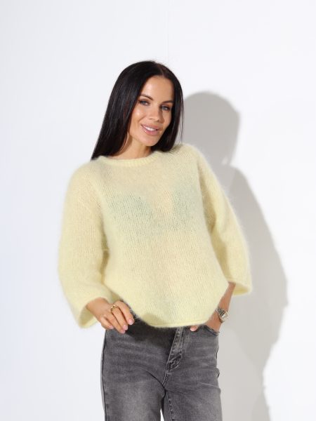 Dzeltens mohēras džemperis ar saīsinātu piedurkni, noapaļota kakla daļa – 17697