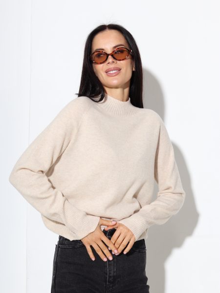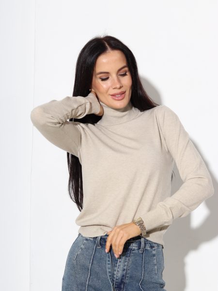 Bēšs, smalka adījuma džemperis ar paaugstinātu kakla daļu – 17352