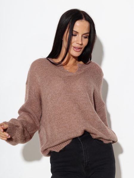 G.brūns, adīts džemperis ar ‘V’ veida kakla daļu – 17171