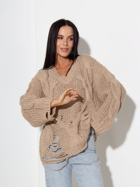 G.brūns džemperis pīnes rakstā ar plēsumiem – 17091