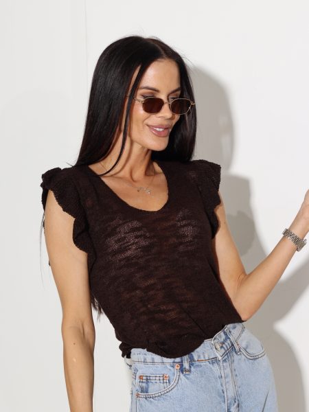 Brūns t-krekls ar polsterētu plecu daļu – 17492