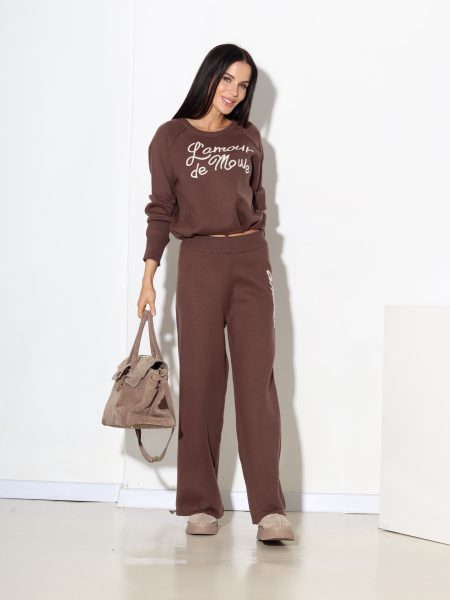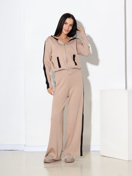 Bēšs+melns komplekts (jaka+bikses), smalki adīts – 17449