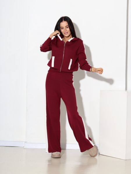 Bordo+balts komplekts (jaka+bikses), smalki adīts – 17447