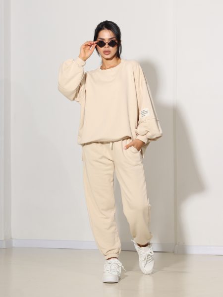 Bēša velveta auduma sporta komplekts – 15872
