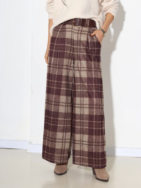 Gaiši brūnas rūtainas bikses ar jostiņu – 17132