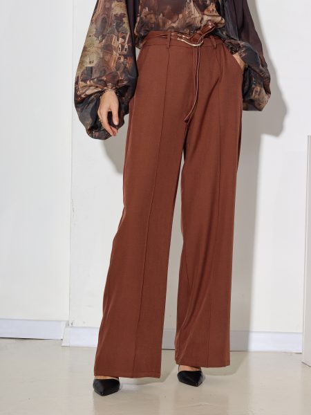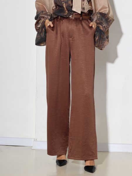 Brūnas, spīdīga audums, klasiskas bikses ar jostiņu – 16844