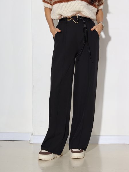 Melnas brīva piegriezuma bikses ar stilizetu jostiņu – 16852