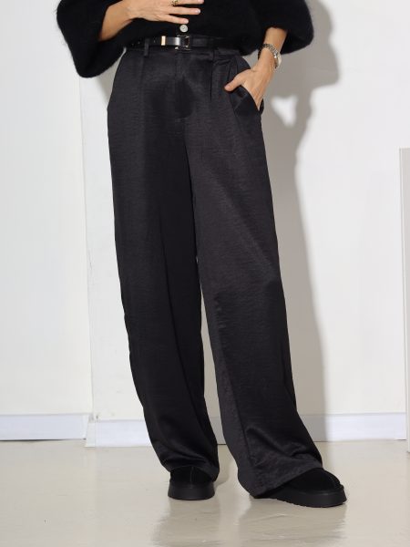 Melna, spīdīga auduma, klasiskas bikses ar jostiņu – 16845