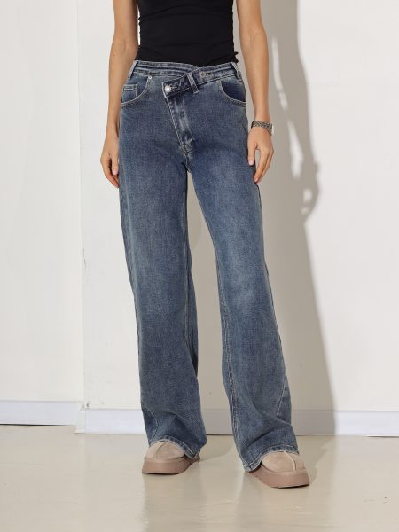 Zilas džinsa bikses ar slīpu pogas aizdari – 16921