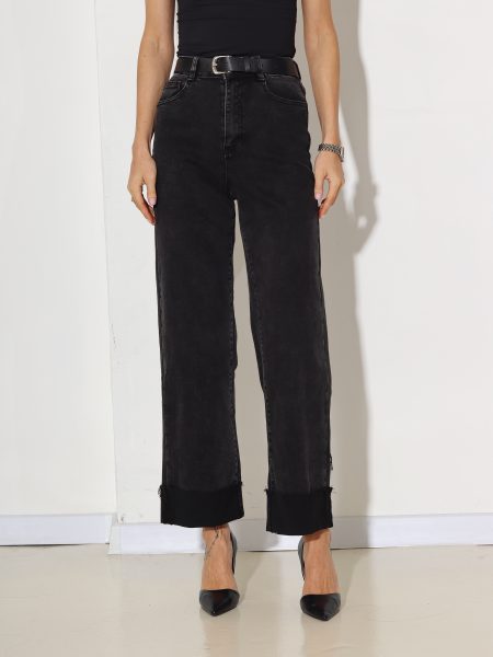 Melnas/balinātas džinsa bikses ar jostu – 16923
