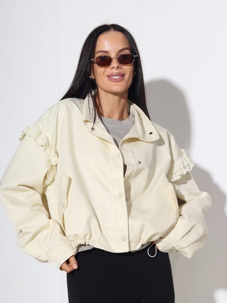 Bēšas krāsas virsjaka ar jostu un kapuci ar dekoratīvu pūku – 17670