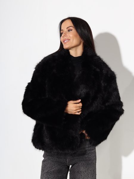 Melns, midi, klasisks kažoks ar īsu spalvu – 17749