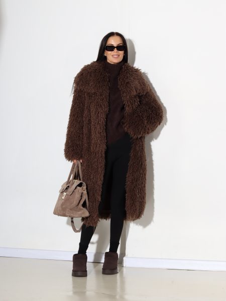 Brūnas krāsas garš kažociņš,, Bārnijs ” ar apkakli – 17549