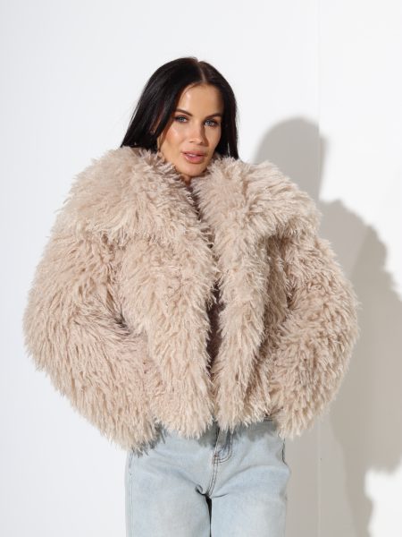 Bēšas krāsas īss kažociņš,, Bārnijs ” ar apkakli – 17544