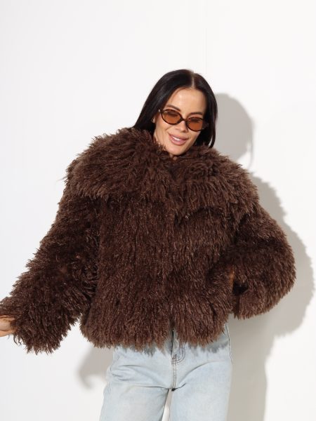 Brūnas krāsas īss kažociņš,, Bārnijs ” ar apkakli – 17543