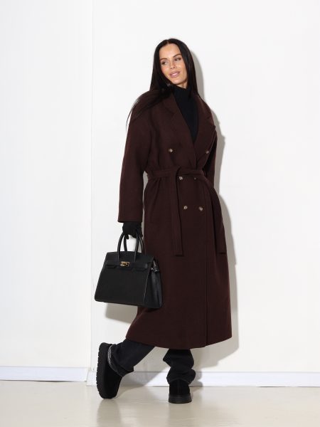 Šoko/brūns krāsas mētelis ar jostiņu, vilnu sastāvā – 17097