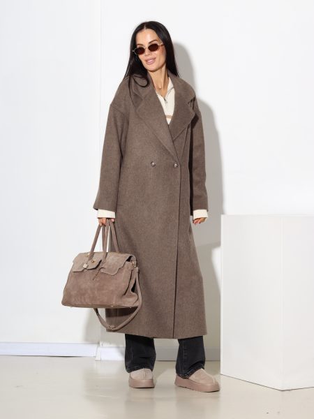 Taupe, taisnas piegrieznes mētelis ar vilnu sastāvā – 17443
