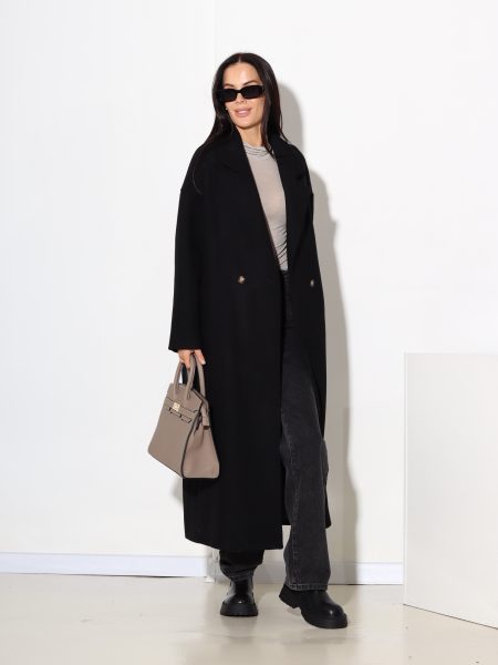 Melns, taisnas piegrieznes mētelis ar vilnu sastāvā – 17444
