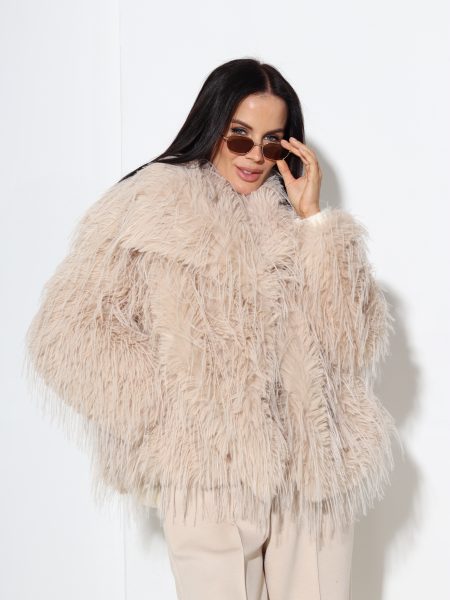 Bēšs m/ā kažociņš ar dažāda garuma spalviņu – 17034