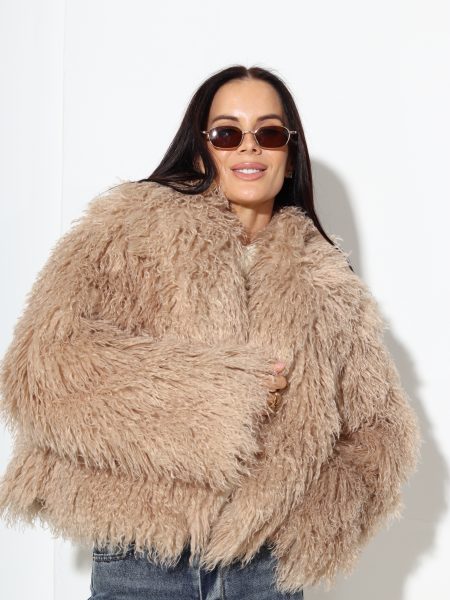 Bēšs īss m/ā kažociņš ar viļņotu spalvu – 17314