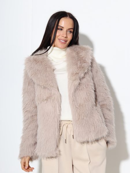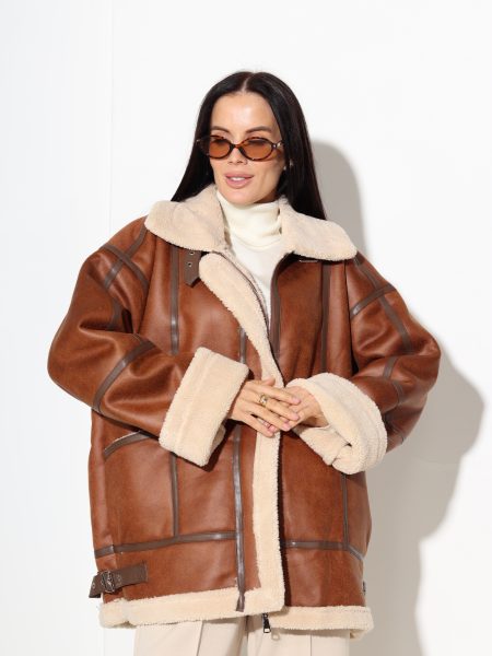 Brūna / camel virsjaka ar baltu apkakli – 17302