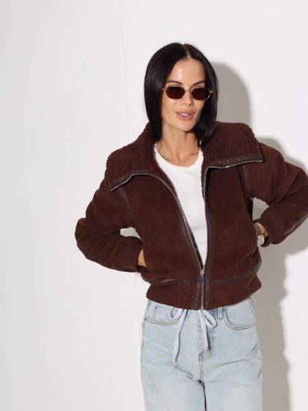 Šoko/brūns velveta bomberjaka a siltinājumu- 16383