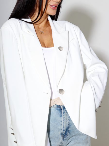 Balta zīdīga auduma žakete ar 2 pogu aizdari – 16407