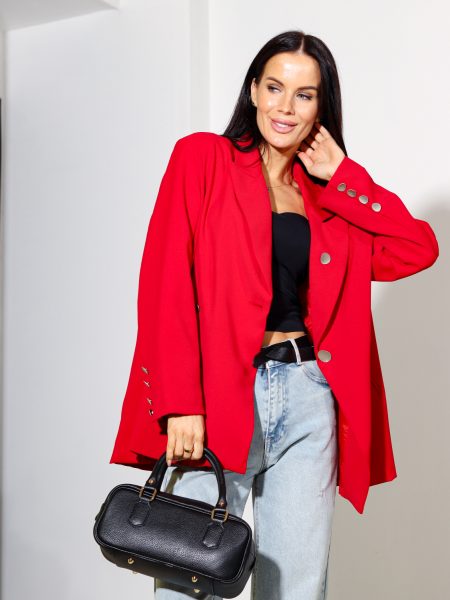Melna zīdīga auduma žakete ar 2 pogu aizdari – 16410