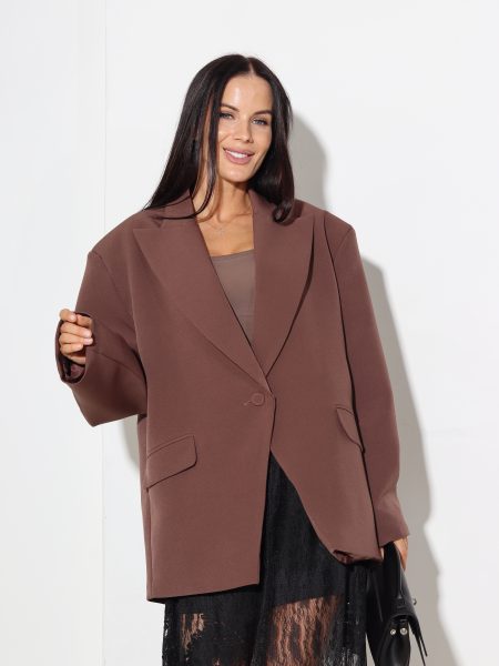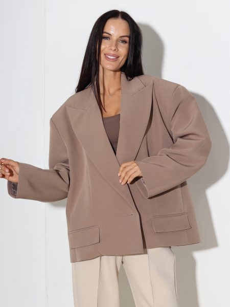Gaiši brūnas krāsas oversize žakete ar pogas aizdari – 16321