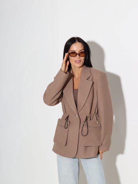 Gaiši brūna žakete ar savilkumu viduklī – 16323