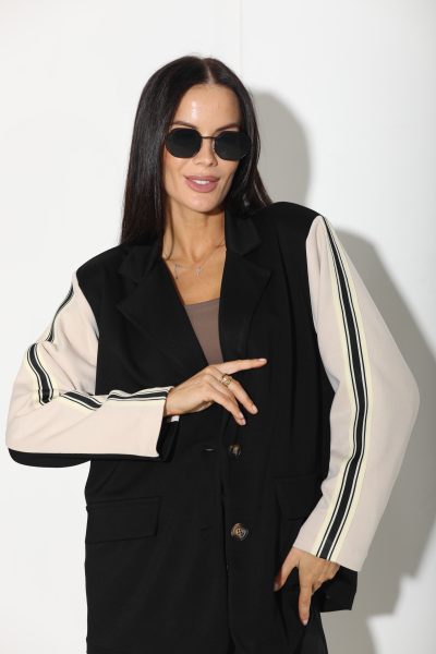 Melna žakete ar dekoratīvām svītrām uz piedurknēm – 16109