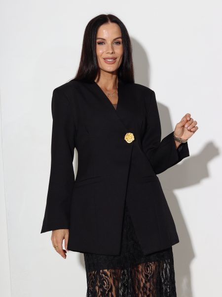 Melna pagarināta žakete bez apkakles atloka – 16291