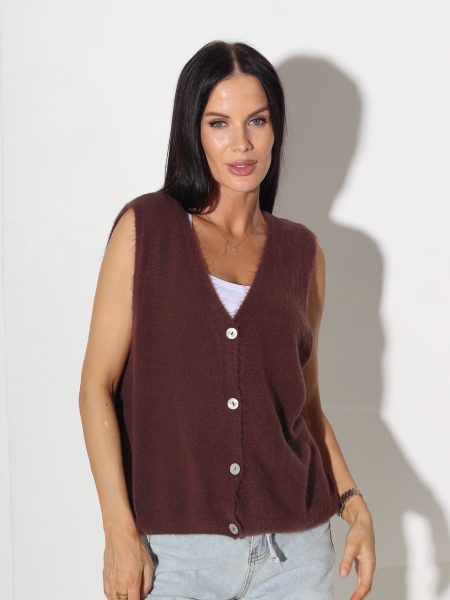 Brūna klasiska veste ar izceltu vidukli – 15930