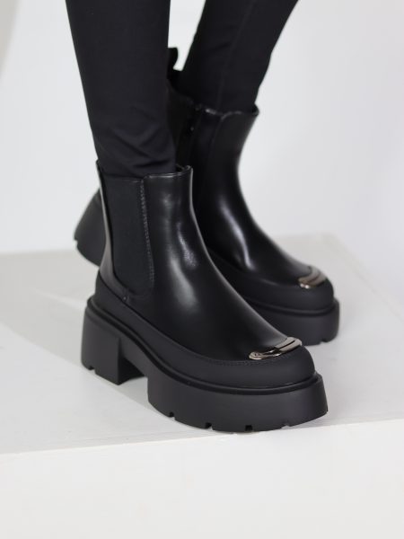 Melni zābaki ar apaļu purngalu un sudraba akcentu – 17101
