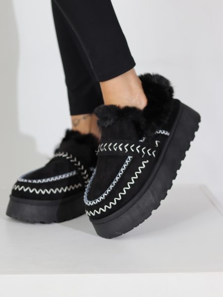 Melni “UGG” tipa apavi ar baltu akcentu – 17105