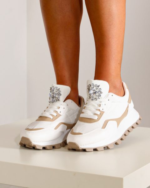 Bēši ,,UGG” tipa apavi ar baltu pūciņu papēža daļā – 16310
