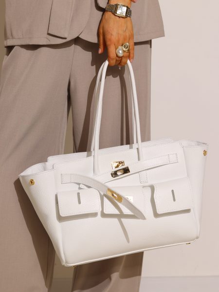 Balts mezgliņdzijas adījuma džemperis, ‘V’ dekoltē – 17508