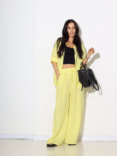 Dzeltens mohēras džemperis ar saīsinātu piedurkni, noapaļota kakla daļa – 17697