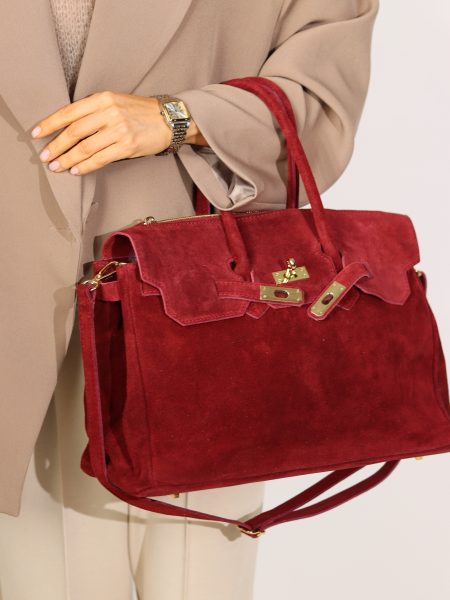 Sarkana zamšādas soma ar dekoratīvu rāvējslēdzēju augšpusē – 16924
