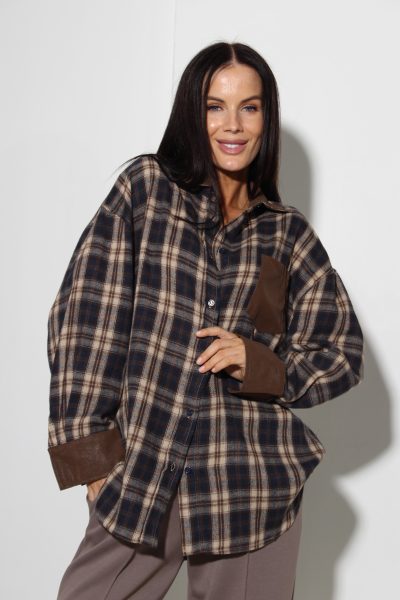 Tumši zilas krāsas rūtains krekls ar zamšādas kabatiņu – 16096