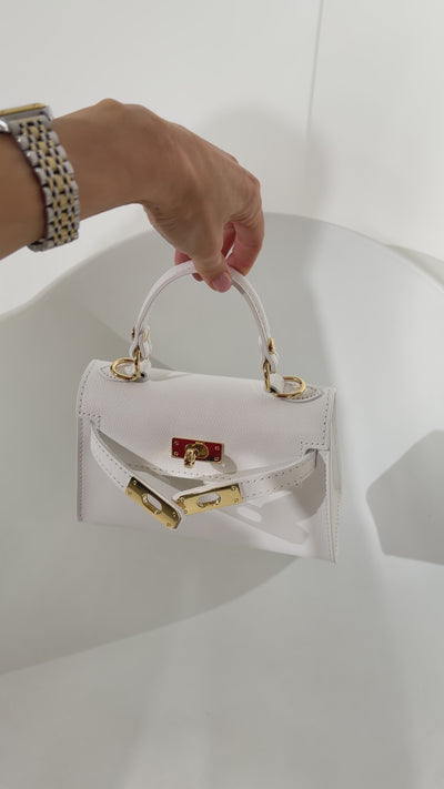 Mini/ maza rokas somiņa ar zelta krāsas aizdari. Somiņai var uzlikt arī plecu lenci (garums regulējams).