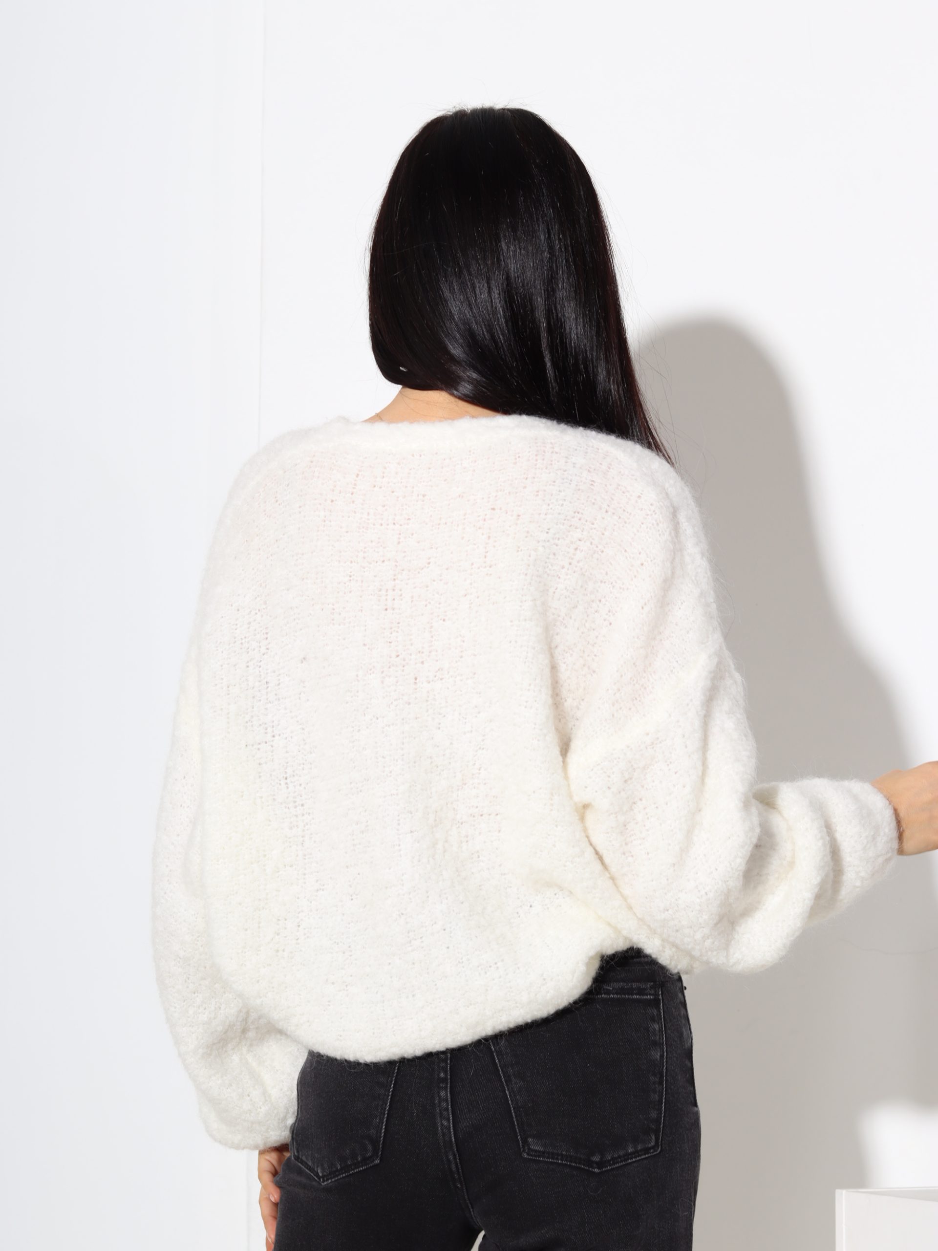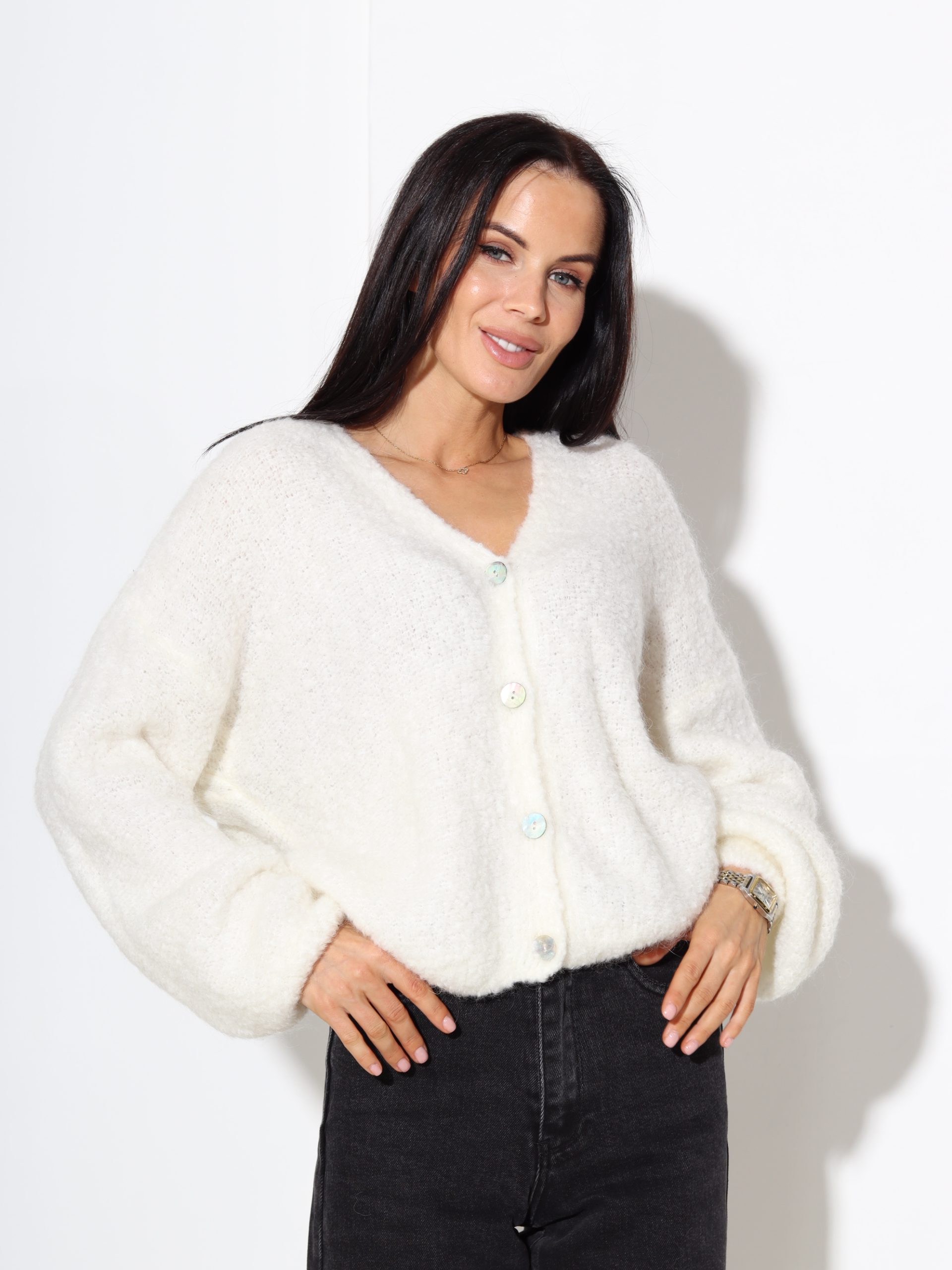 Balta mezgliņdzijas adījuma jaka, podziņu aizdare – 17513