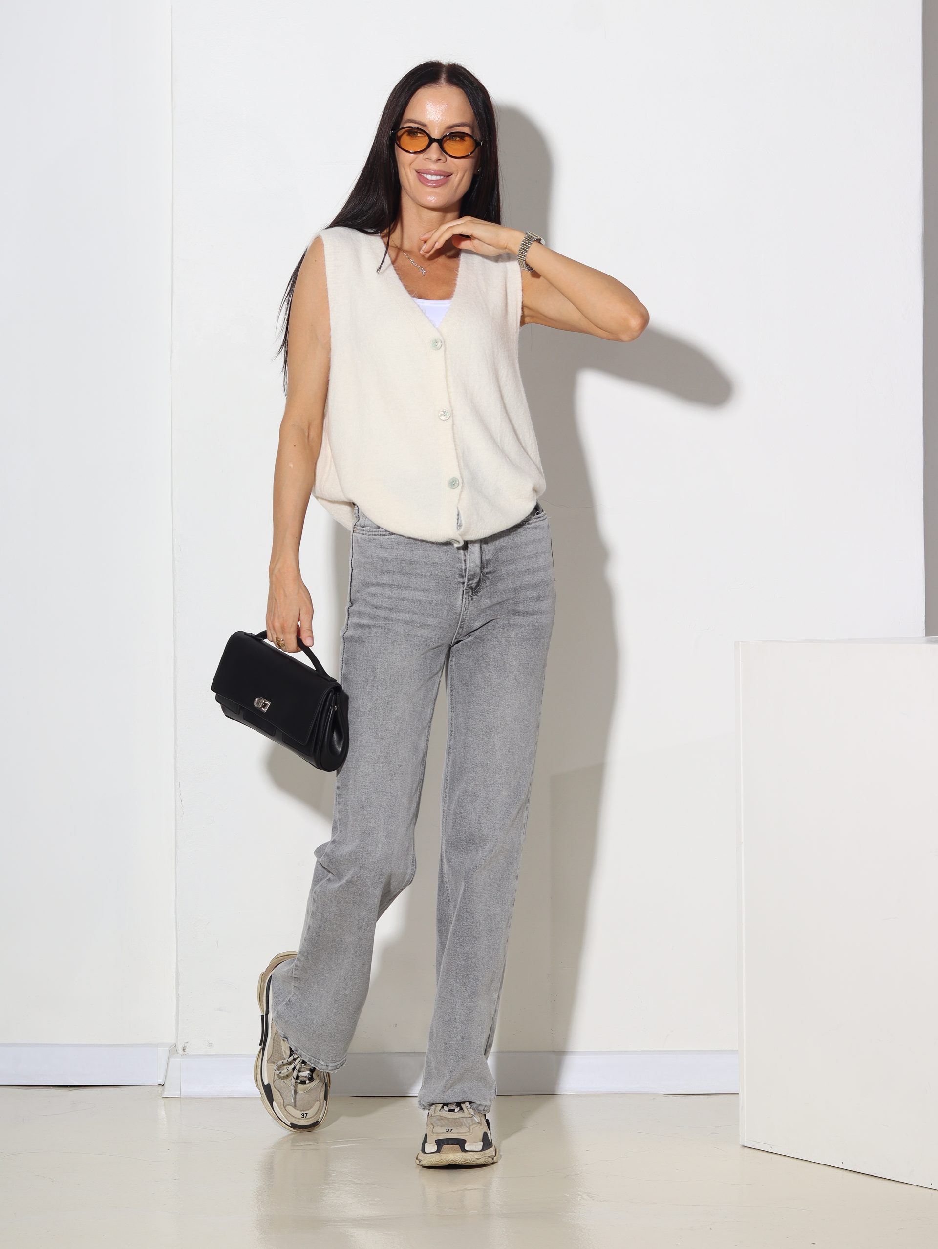 Smalka adījuma  veste ar alpaku sastāvā un ,,V” veida kakla izgriezumu aizdare uz podziņām . Ļoti silta un mīksta vestīte.