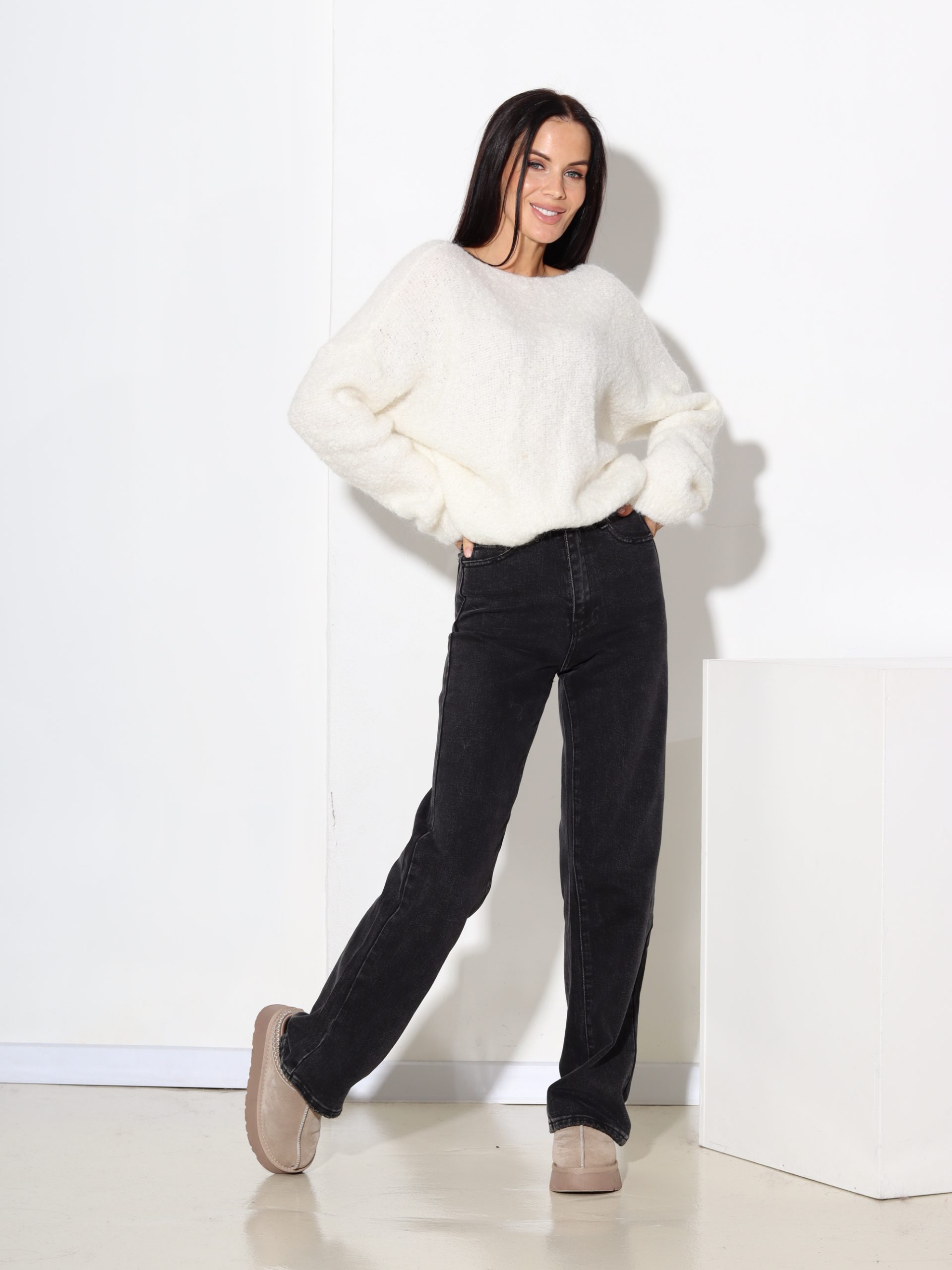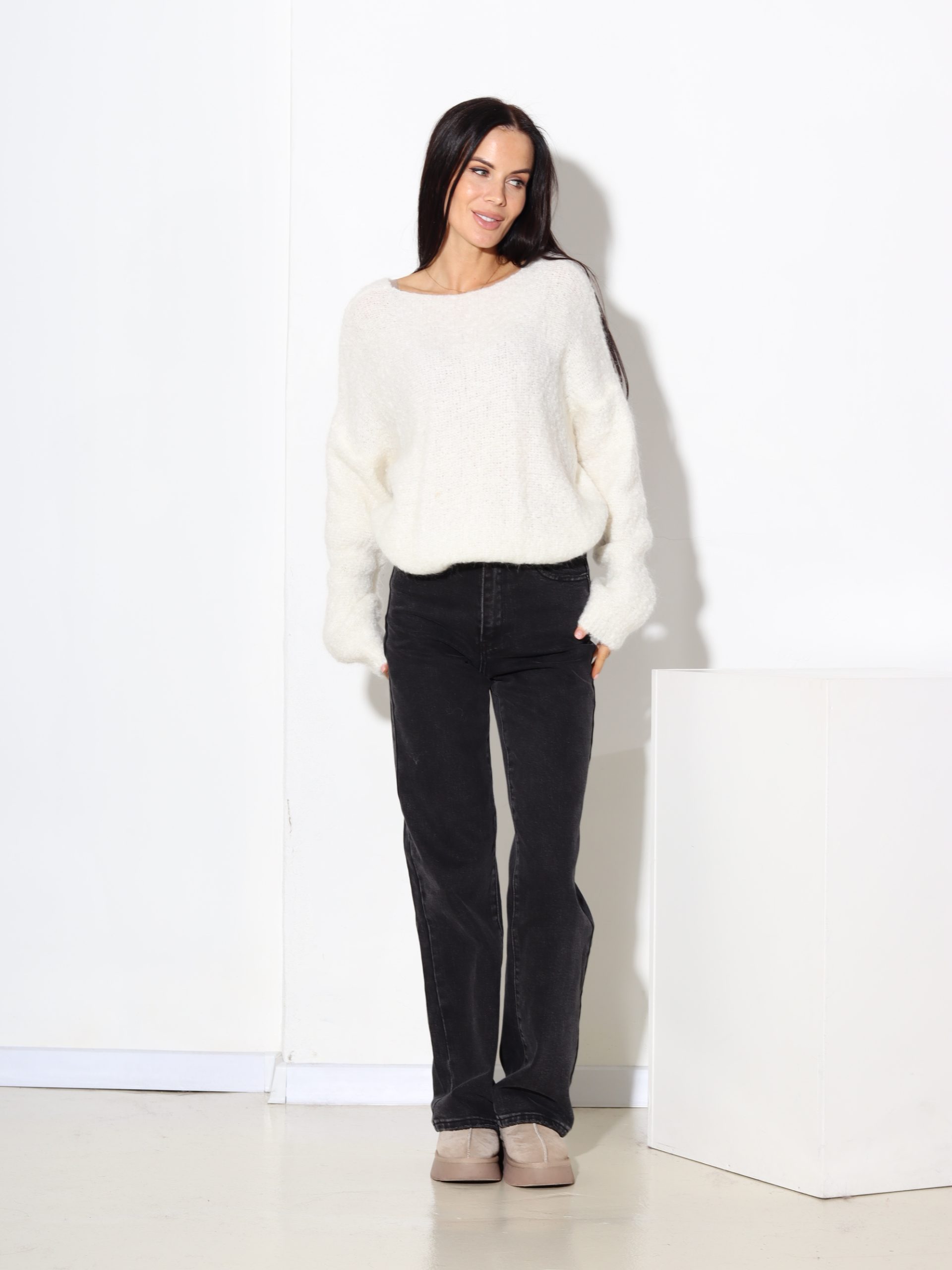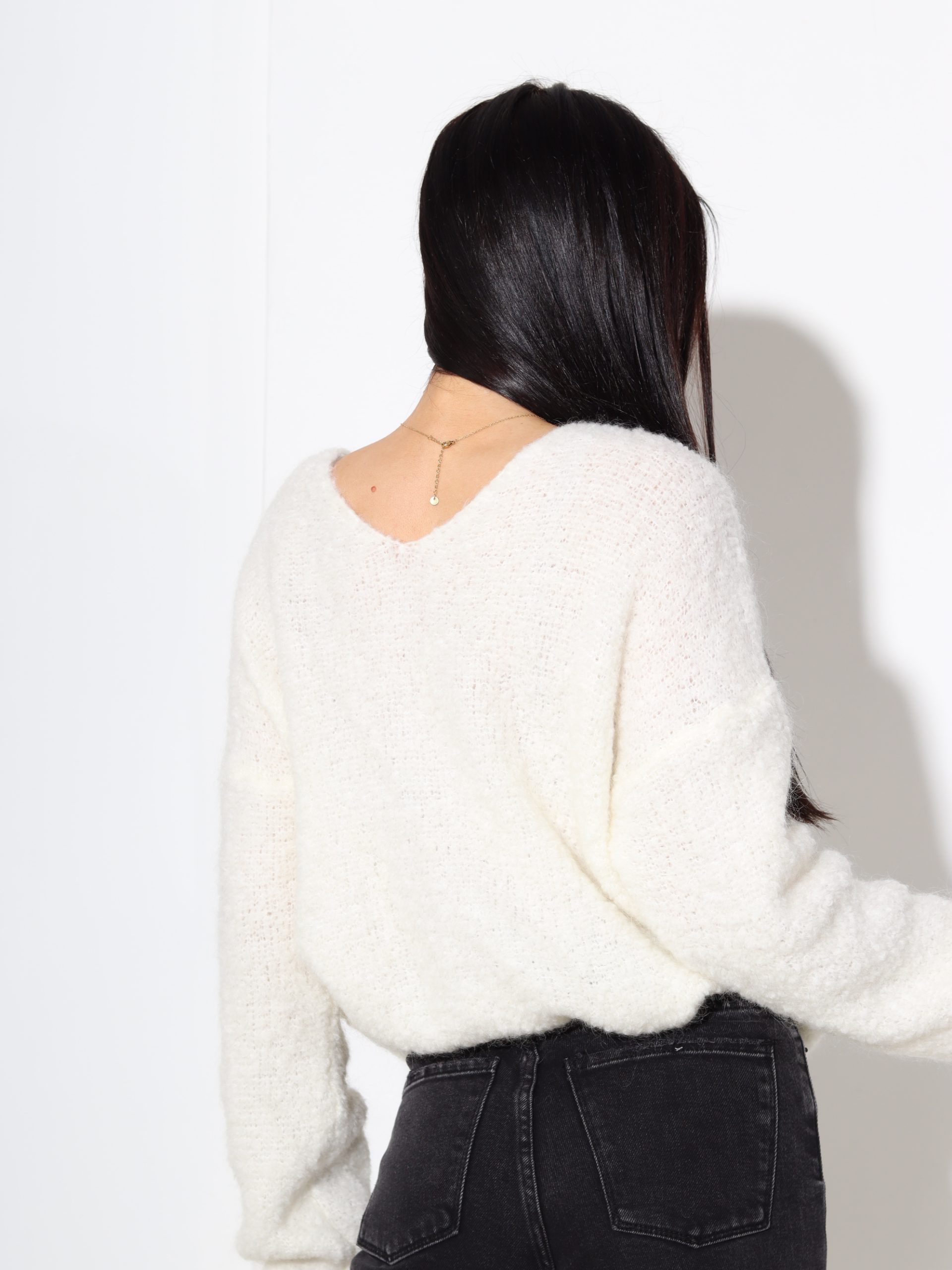 Balts mezgliņdzijas adījuma džemperis, ‘V’ dekoltē – 17508